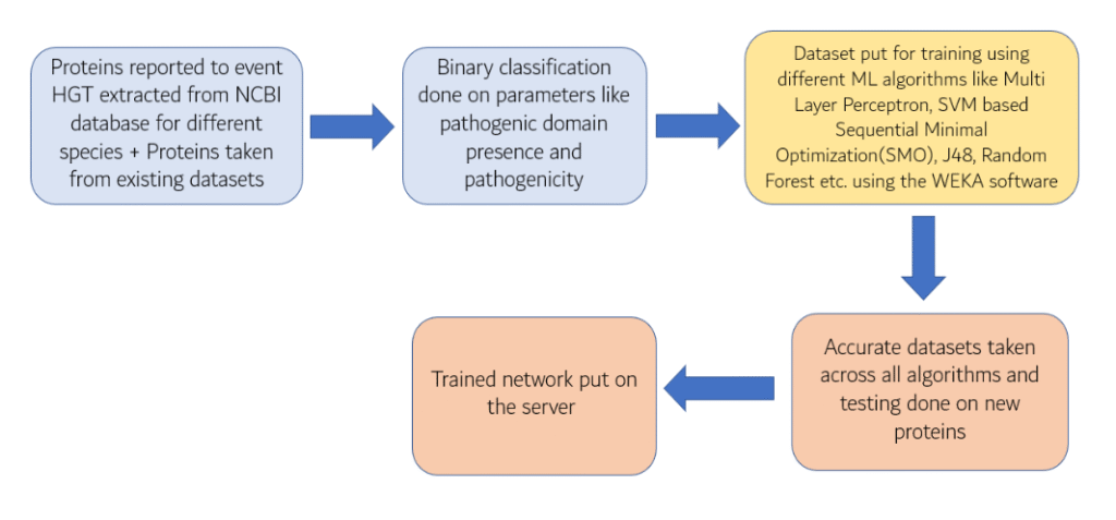 Horizontal gene transfer (HGT) takes place when two organisms share their genetic material. Contrary to the ancestral transfer of genes, viz. Vertical gene transfer, the HGT, is very commonly found in many species of bacteria even if there is distantly related evidence which is phylogenies, sequence comparison, and genome characteristics. In this work, we use an Artificial Intelligence/Machine Learning (AI/ML) model which is based on unsupervised learning on the human fungal pathogenesis dataset. The AI/ML model discovers distinctive classification/annotation features which are able to predict a correlation between pathogenesis and horizontal transfer events with unknown queries. Horigene will be soon available