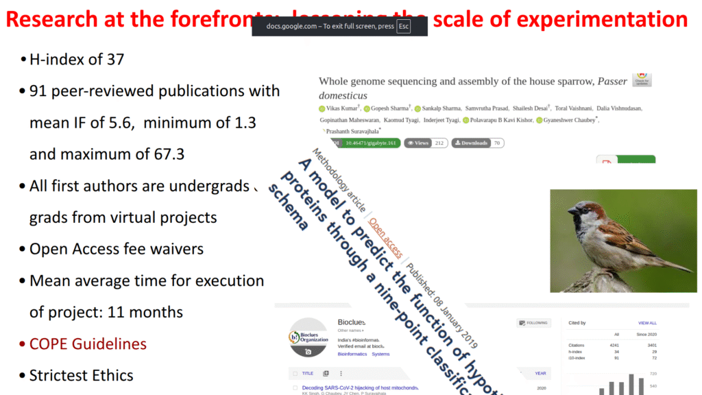 Bioclues.org through virtual projects has several publications. Various web servers hosted can be checked through respective pages.